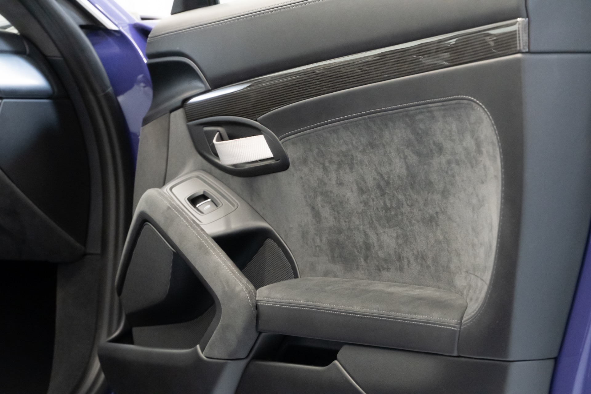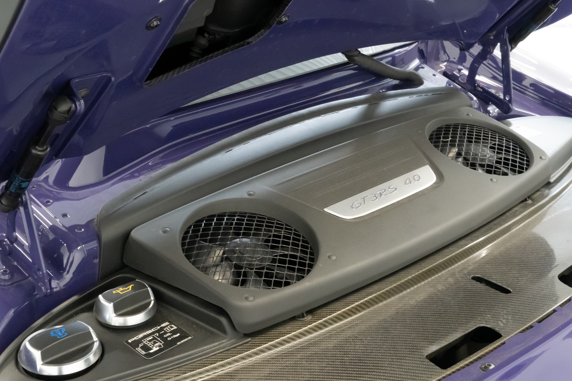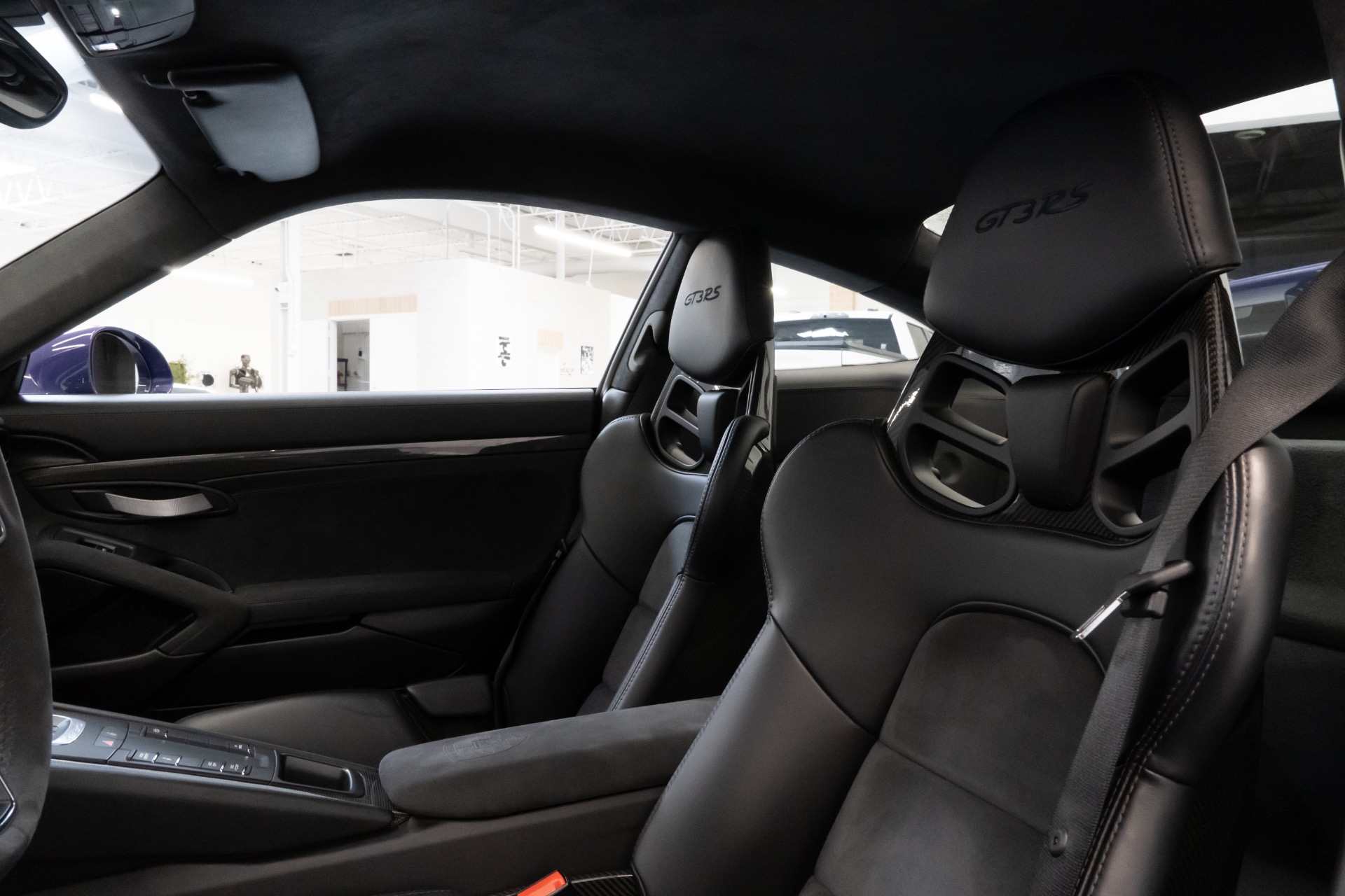 The exterior of this Porsche 911 GT3RS is finished in the striking Ultraviolet paint, an attention-commanding hue that accentuates the car's aggressive lines and aerodynamic design. Complementing the exterior is the exquisite Black/GT Silver leather interior with Alcantara inserts, a luxurious and sporty combination that envelopes the driver and passenger in pure comfort.
