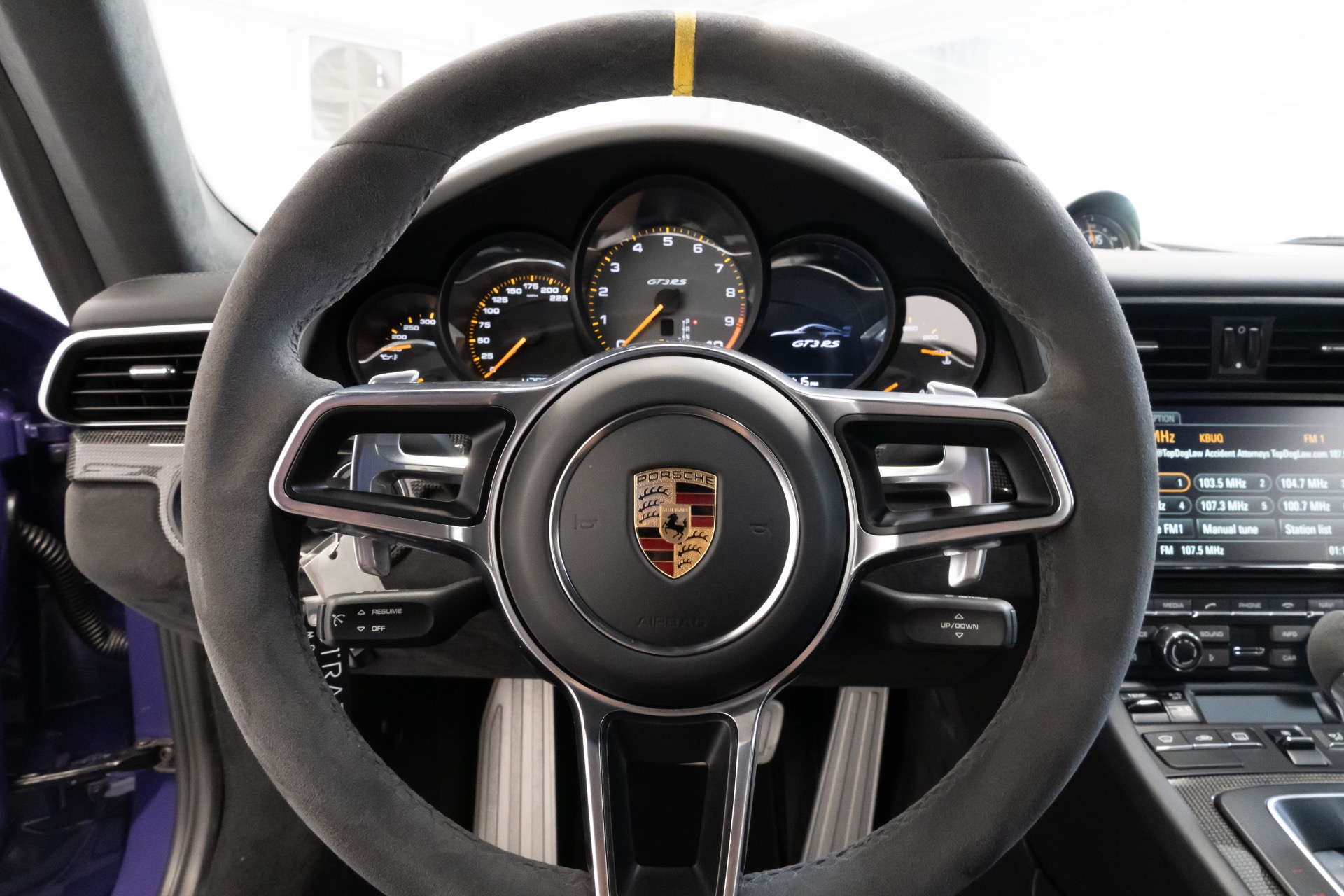 Additionally, this GT3RS is equipped with full paint protection film, safeguarding the Ultraviolet exterior from the elements and ensuring its pristine appearance. For added peace of mind, a K40 radar detector is seamlessly integrated, offering a discrete yet effective solution for staying aware of your surroundings.